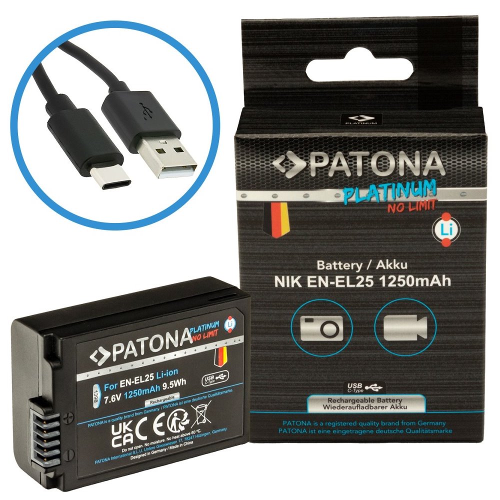 Kompatibilní baterie pro fotoaparáty Nikon. Baterie se vyznačují vysokou kvalitou, mají integrovanou ochranu proti přetížení, přebití a přehřívání. Nabíjení baterie je realizováno skrze zabudovaný konektor USB-C či klasickou nabíječkou baterií. Nabíjecí proud max. 1,2 A (vyšší vstupní proudy jsou automaticky redukovány pomocí IC ovládání baterie).