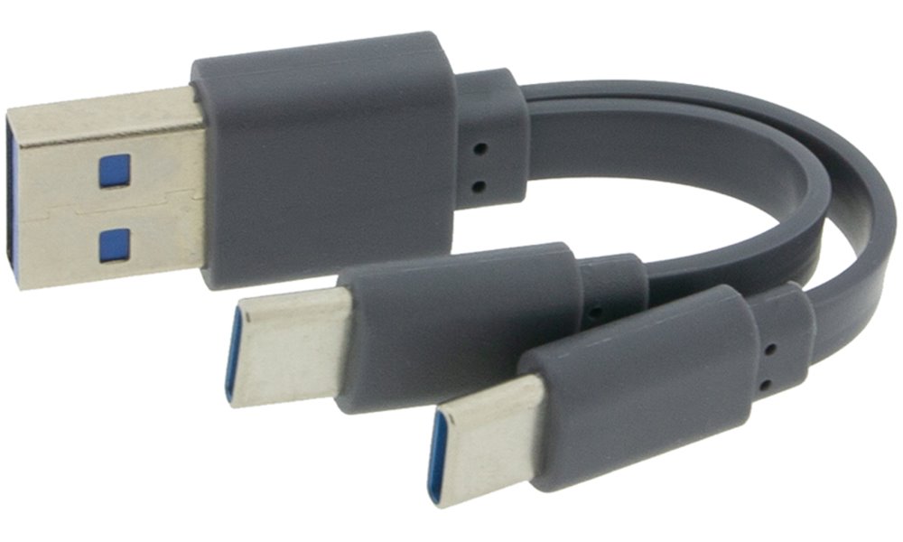 Balení obsahuje 2 kusy baterií a nabíjecí kabel USB-C na 2× USB-C.