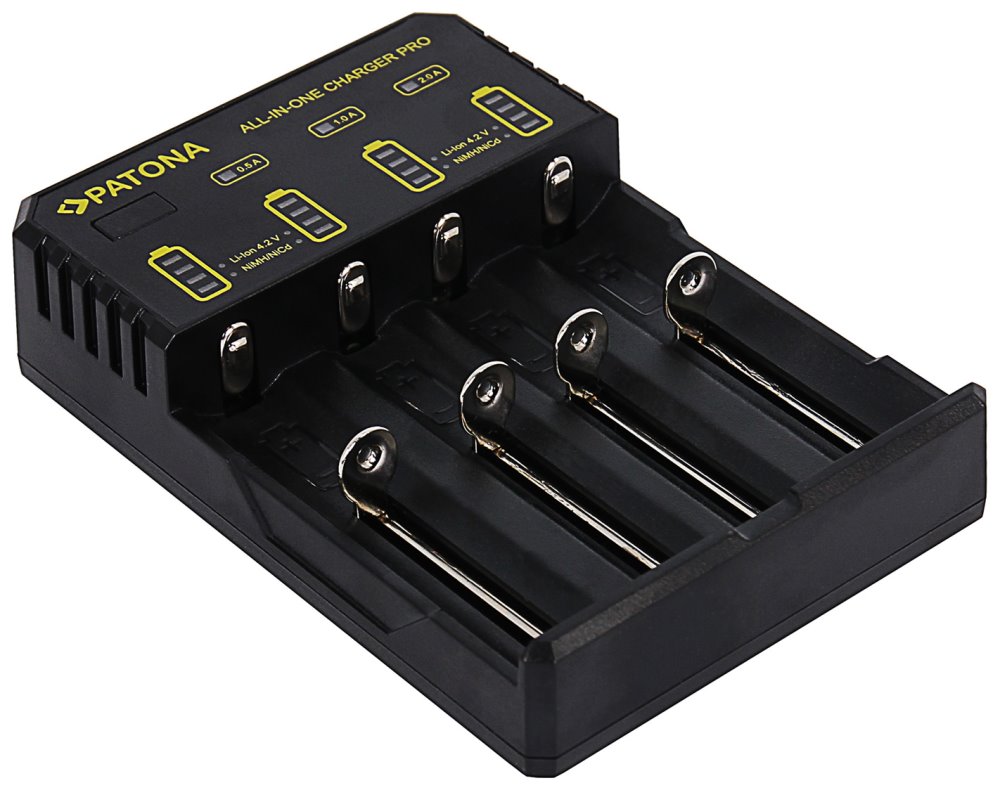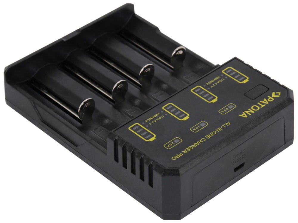 Univerzální nabíječka se čtyřmi sloty umožňuje nabíjet širokou škálu baterií včetně AA, AAA, CR123A či 18650. Vestavěný mikroprocesor chrání baterie před přehřátím nebo přebitím. Napájení je realizováno skrze micro USB konektor.