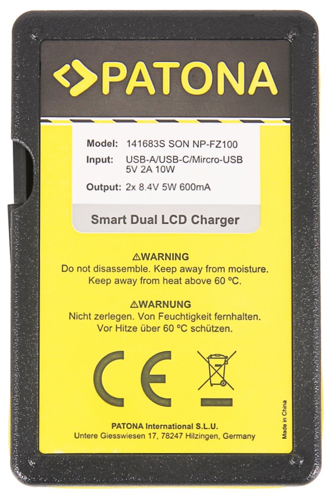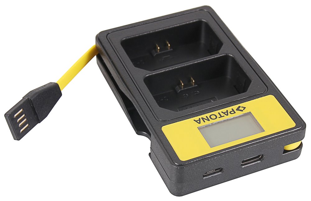 S nabíječkou Patona DUAL lze nabíjet současně 2 baterie najednou, bez ohledu na to, zda mají obě baterie stejnou kapacitu. Na LCD se zobrazuje aktuální stav nabití baterie. Nabíječky jsou vyráběny dle nejvyšších evropských standardů kvality a vyznačují se extrémně dlouhou životností. Nabíječku lze napájet skrze micro USB, USB-A či USB-C port.