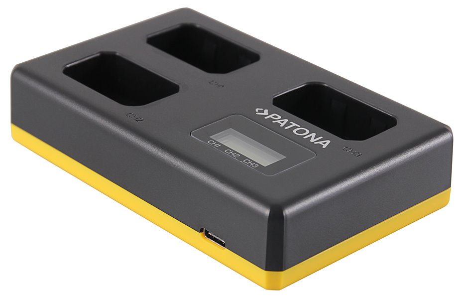 S nabíječkou Patona Triple lze nabíjet současně až 3 baterie. Na LCD displeji se zobrazuje aktuální stav nabití baterie. Napájení nabíječky je realizováno skrze standardní USB port pomocí dodaného kabelu USB typu C. Nabíječky jsou vyráběny dle nejvyšších evropských standardů kvality a vyznačují se extrémně dlouhou životností.