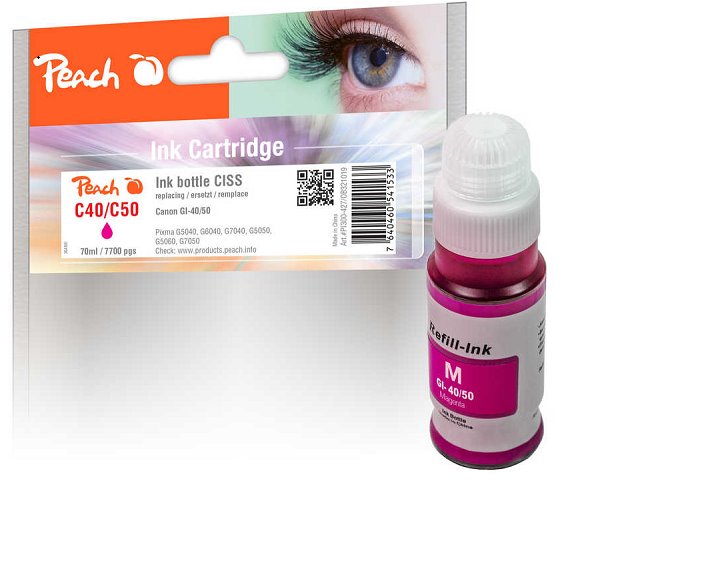 Počítače a kancelář  Tiskárny, kopírky, multifunkční zařízení  Příslušenství a spotřební materiál  Peach kompatibilní cartridge Canon GI-40/50 magenta, 70ml