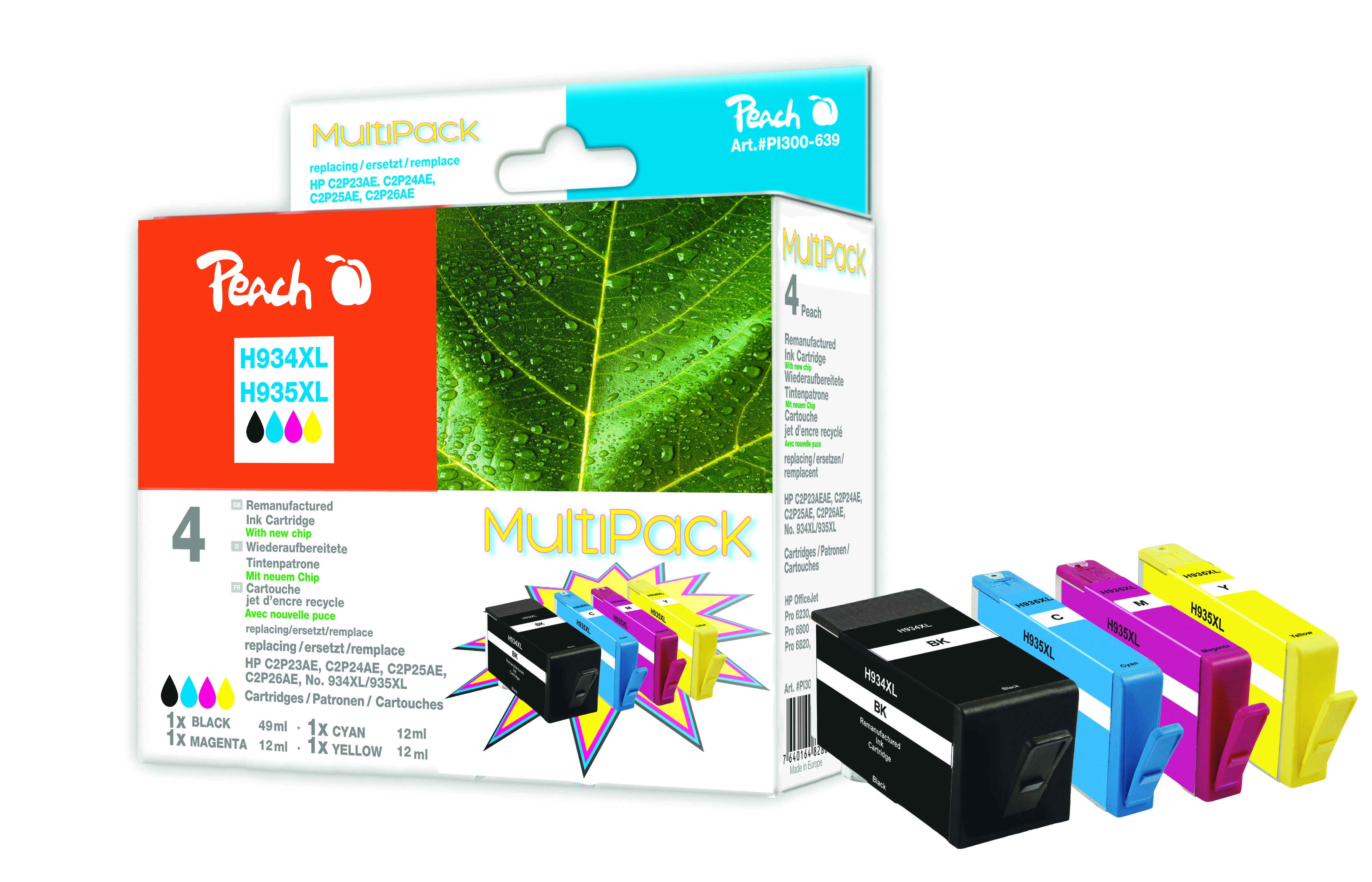 1 x Peach Ink Cartridge with chip cyan HC, compatible with HP No.