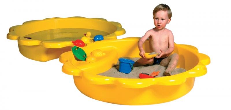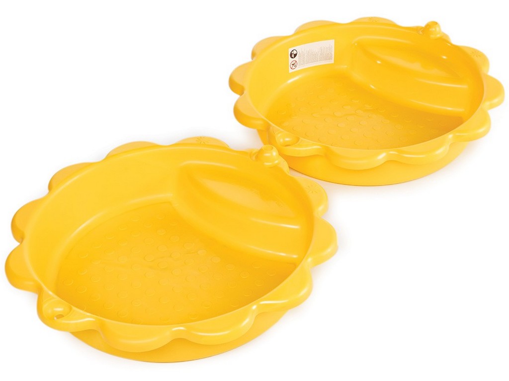 Pískoviště ve tvaru slunečnice je složeno ze 2 částí s integrovanými sedadly. Brouzdaliště je vyrobené z kvalitního a odolného plastu. Po skončení zábavy stačí jen pískoviště zaklopit volnou částí, která může sloužit jako víko. Do druhého dne zůstane vše nedotčené a vaše dítko může dostavět nedokončený hrad z písku. V horkých letních dnech lze víko oddělit od části s pískem a naplnit vodou. Během chvíle tak máte připravený osvěžující bazének.