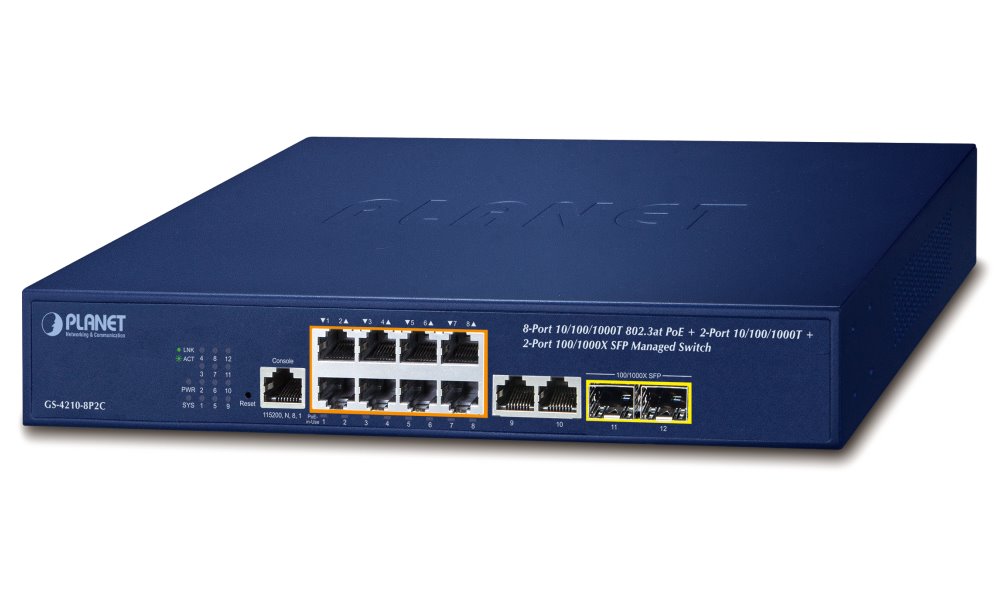 Spravovatelný PoE přepínač nabízí 10 portů 10/100/1000 Base-T