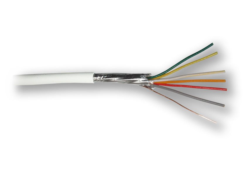 Stíněný kabel typu "lanko", 4 žíly, průřez lanka 0,22 mm2, pro slaboproudé rozvody EZS, balení po 100 m délky, značení délky na plášti kabelu.