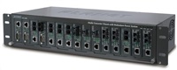 Kovové šasi pro instalaci až patnácti konvertorů médií do jediné skříně o výšce 2,5U. Skříň má vlastní napájení konvertorů a výrazně tak snižuje prostorové nároky konvertorů. Obsahuje slot pro redundantní napájení pro případ výpadku hlavního napájení. Důležité je i výkonné chlazení. Jednotlivé konvertory se snadno instalují zasunutím z čelní strany.