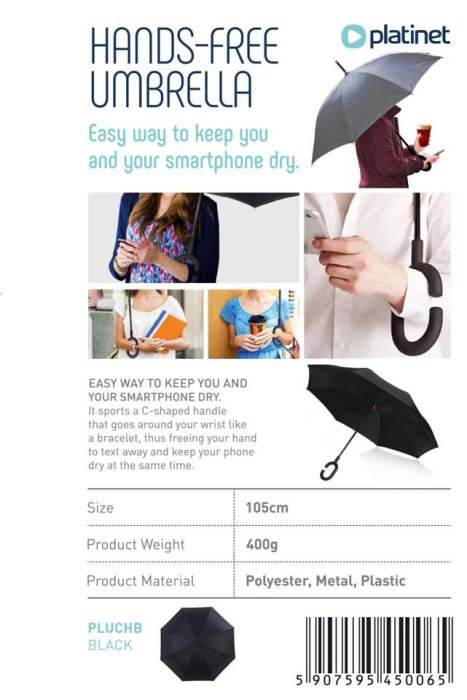 Barva: černá, modrá Materiál: polyester Tyč: černě potažený kov Rukojeť: pogumovaná, ve tvaru C Automatické otevírání, ruční zavírání