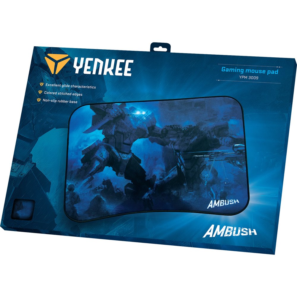 Velkoplošná herní podložka Yenkee YPM 3009 Ambush zajistí plynulý pohyb kurzoru optických a laserových myší, čímž zlepší komfort při hraní rozličných titulů, takže je vhodná pro počítačové hráče všeho druhu. Svrchní část podložky tvoří polyesterová 3D tkanina se skvělými kluznými vlastnostmi pro vyšší citlivost, rychlost, přesnost a spolehlivost myši a spodní strana je vyrobená z extrémně přilnavé pryže, která spolehlivě zabrání pohybu podložky po stole pro maximální pohodlí za každé situace.