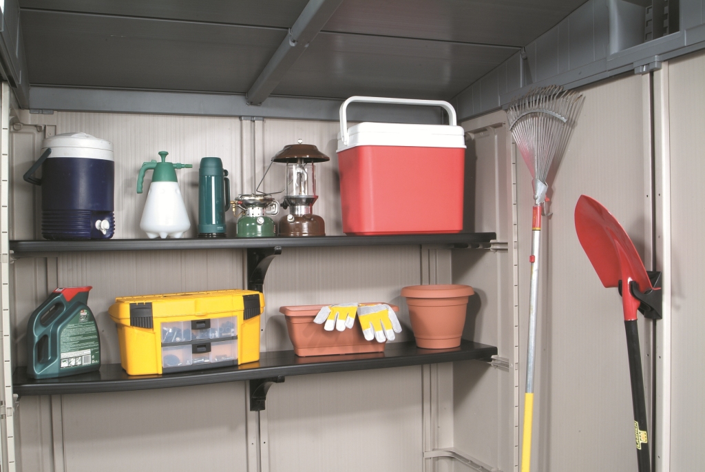 Všechny 4 police o rozměrech 68 x 25 cm jsou vyrobené z kvalitního a pevného plastu, který jim zajišťuje dlouhou životnost. Jejich instalace je opravdu snadná a nezabere vám příliš mnoho času. Můžete je namontovat 2 způsoby. Pokud je instalujete vedle sebe, vytvoříte si jednu dlouhou polici. Můžete je rovněž umístit samostatně nad sebe. Do 2 šikovných držáků nářadí můžete zavěsit například hrábě nebo rýč.