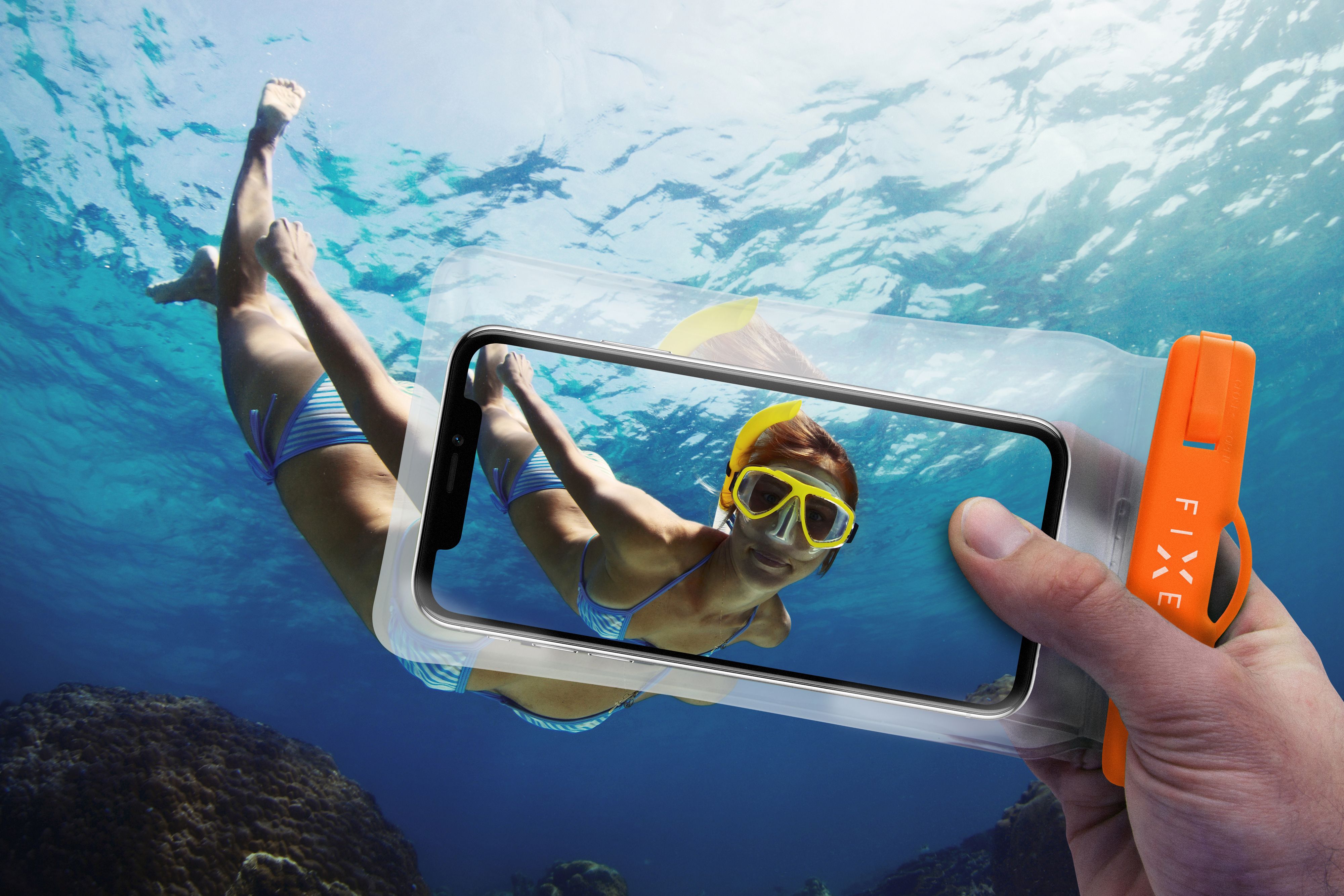 Dovolená na pláži, koupání v bazénu nebo třeba ochlazování bosých nohou v řece už není nebezpečné pro váš telefon. S pouzdrem FIXED Float spolehlivě ochráníte mobil před potopením a namočením během vodních radovánek. Do pouzdra se vejdou i větší smartphony o velikosti až 9,5 x 17,5 cm.