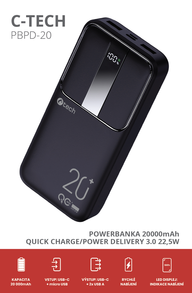 Představujeme vám novou powerbanku C-tech PBPD-20 s kapacitou