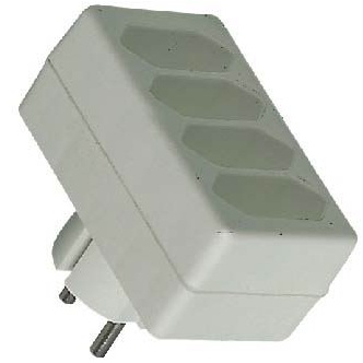 Rozčtyřka 230V - bílá - 230V, 4x2,5A max - baleno po 1ks - závěs s EAN kodem - 1x kulatá zástrčka - 3x plochá zásuvka