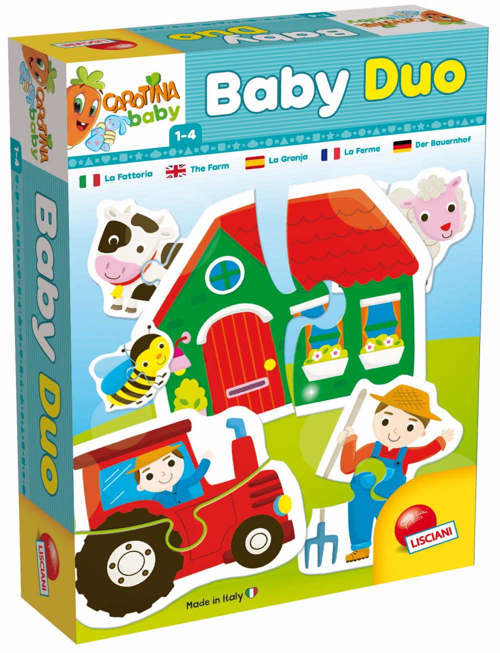 Zajistěte svým robátkům spoustu zábavy a pořiďte jim puzzle Carotina Baby Duo s motivy farmy od značky Liscianigioch. Každý obrázek v balení se skládá ze 2 dílků. Sledujte své děti, jak si hrají s puzzlemi a vytváří zvířátka, která žijí na statku, farmáře či domeček. Nebo se přidejte k nim a učte je jména jednotlivých motivů.