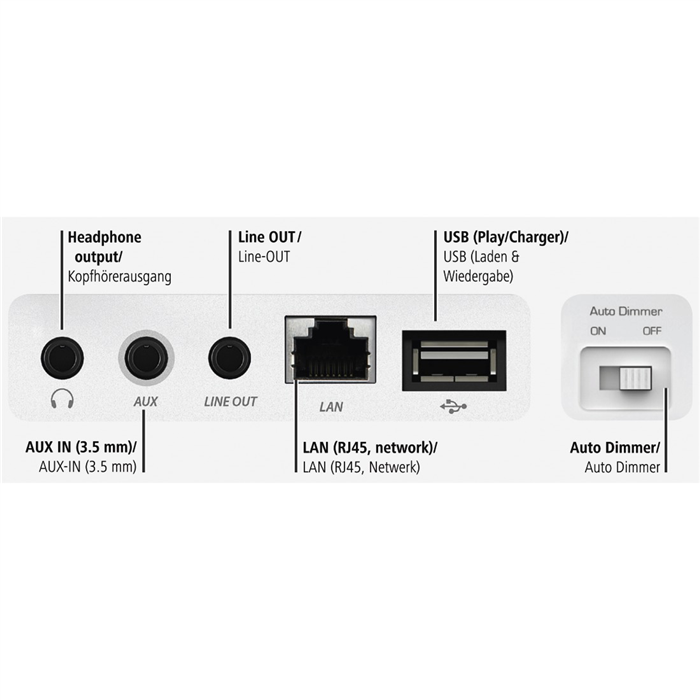 Rádio pak podporuje přehrávání nejpoužívanějších audio formátů MP3, WMA v9/ASF, M4A, ADTS, WAV, LPCM, FLAC a ALAC, což přijde vhod při užití paměťových médiích s USB rozhraním, jako jsou různé flash disky či externí SSD a HDD jednotky. Připojit můžete i další zařízení za pomocí univerzálního 3,5mm Jack vstupu, což přije vhod například v případě, kdy k němu budete chtít připojit například gramofon. Díky 3,5mm audio výstupu k rádiu snadno připojíte také různorodé náhlavní soupravy a sluchátka, takže již nemusíte při svých aktivitách rušit své okolí poslechem hudby či zpráv.