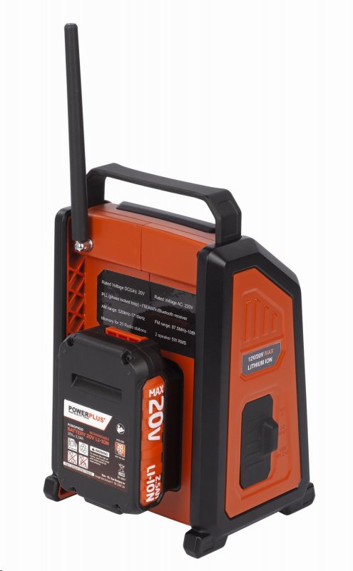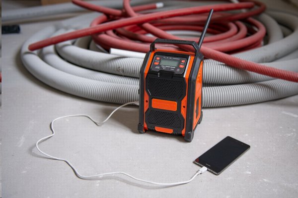Do paměti rádia můžete uložit 20 oblíbených rádiových stanic nebo připojit svůj smartphone ať už přes Bluetooth nebo USB konektor a zvolit si vlastní hudbu. USB port rádia je taktéž užitečný pro nabíjení smartphonu. Bezdrátové rádio lze napájet pomocí baterie ze série Dual Power a to o napětí 20V i 40V nebo jej můžete připojit taky k elektrické síti.