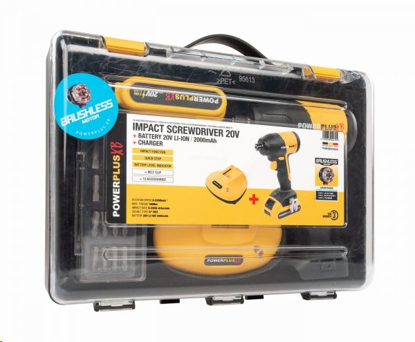 Akumulátorový rázový utahovák POWXB30020 z řady Powerplus XB má max. kroutící moment 160 Nm. Kompaktní 20V elektrické nářadí je vybaveno výkonným a extra odolným bezuhlíkovým motorem.