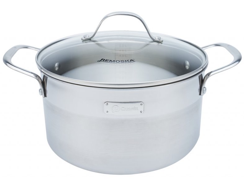 Remoska Quanta je vysoce kvalitní nerezové nádobí, jehož zakoupením povýšíte vybavení své domácí kuchyně na úroveň profesionála. Hrnec je vyroben z materiálu kombinujícího teplotní vodivost hliníku a zároveň zdravotní nezávadnost a odolnost nerezového plechu. Uvnitř je opatřen praktickými odměrnými měrkami a venku je osazen celokovovými ergonomickými nýtovanými držadly. Skleněná poklice z tvrzeného bezpečnostního skla je osazena parním ventilem, který zajišťuje odvod nadbytečné páry a nerezovým okrajem po obvodu profilu pro snadný odtok zkondenzované páry zpět do nádoby.