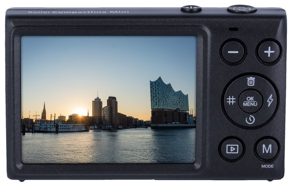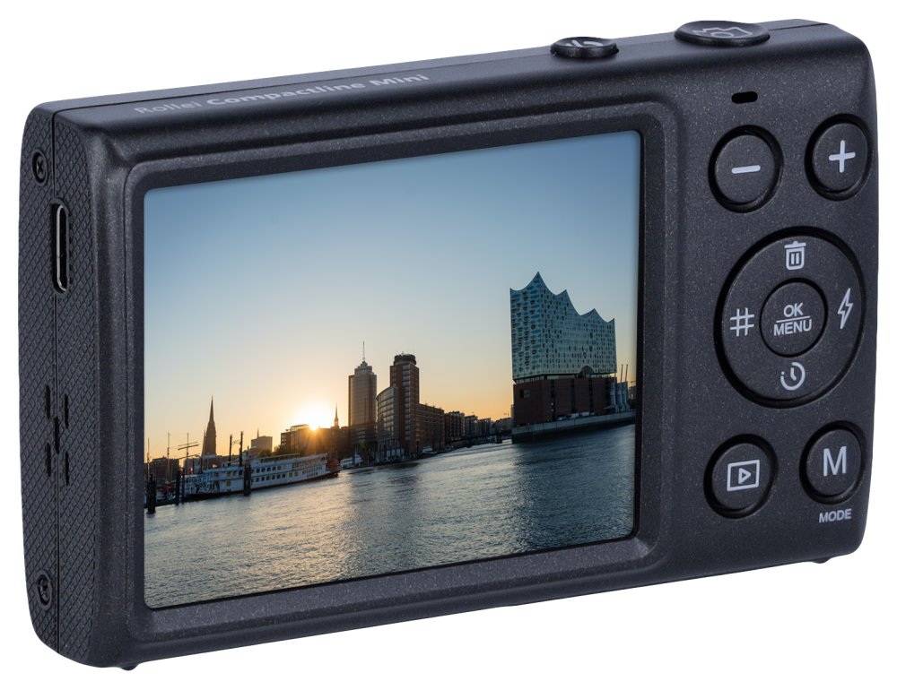 Rollei Compactline Mini umožňuje pořizovat fotky se špičkovým rozlišením až 3264 × 2448 px (9248 × 6936 interpolovaně) a nahrávat video v 4K kvalitě při 22 snímcích za sekundu. Snímanou scénu lze sledovat na 2,8" LCD displeji. Pro ukládání záznamů disponuje slotem pro microSD kartu o velikosti až 64 GB. Záznamy jsou na paměťovou kartu ukládány ve formátech JPG a MP4. Samozřejmostí je 1/4" závit pro upevnění na stativ. Pro nabíjení a přenos dat je vybaven USB-C portem. Disponuje lithium-iontovou baterií s kapacitou 700 mAh (2,59 Wh). Součástí balení je baterie, USB-C kabel a popruh na zápěstí.