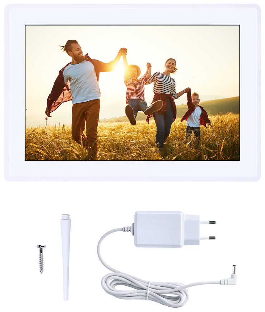 Wi-Fi digitální rámeček pro prezentaci fotografií a krátkých videí (max. 15 s), založený na operačním systému Android 6.0. Nabízí 10,1" dotykový IPS displej s rozlišením 1280 × 800 obrazových bodů, reproduktor o výkonu 1 W a 8 GB interní paměti, která pojme až 7000 fotografií nebo 250 videí. Ty lze do rámečku odesílat přes mobilní aplikaci Frameo nebo klasicky přes paměťovou kartu microSD či externí paměť s konektorem micro USB. K dispozici je navíc mnoho různých funkcí, např. můžete přidávat různé popisky a emoji k fotografiím, automaticky či manuálně je otáčet nebo zapnout režim spánku, aby se minimalizovala spotřeba energie. Díky odnímatelnému stojanu jej lze jak postavit na stůl, tak zavěsit na zeď.