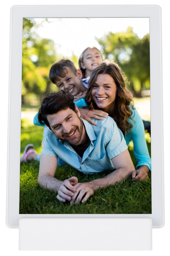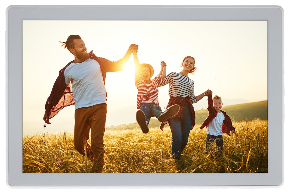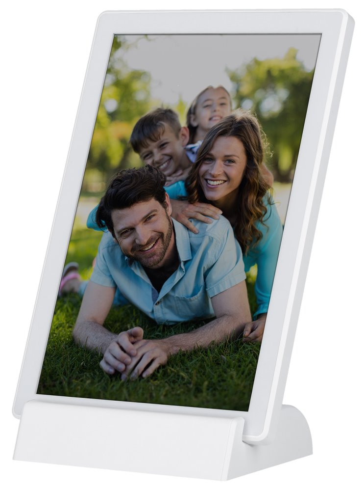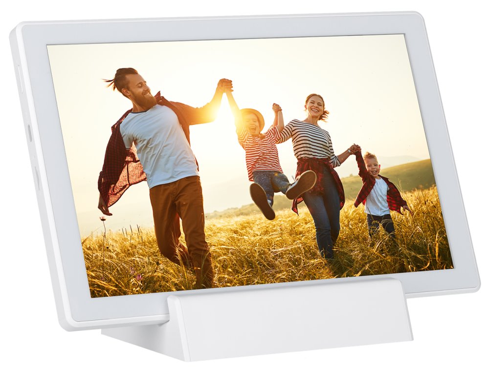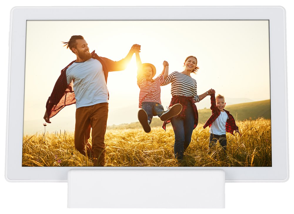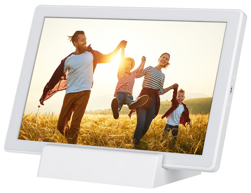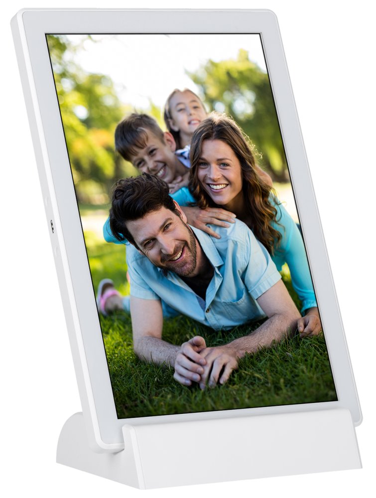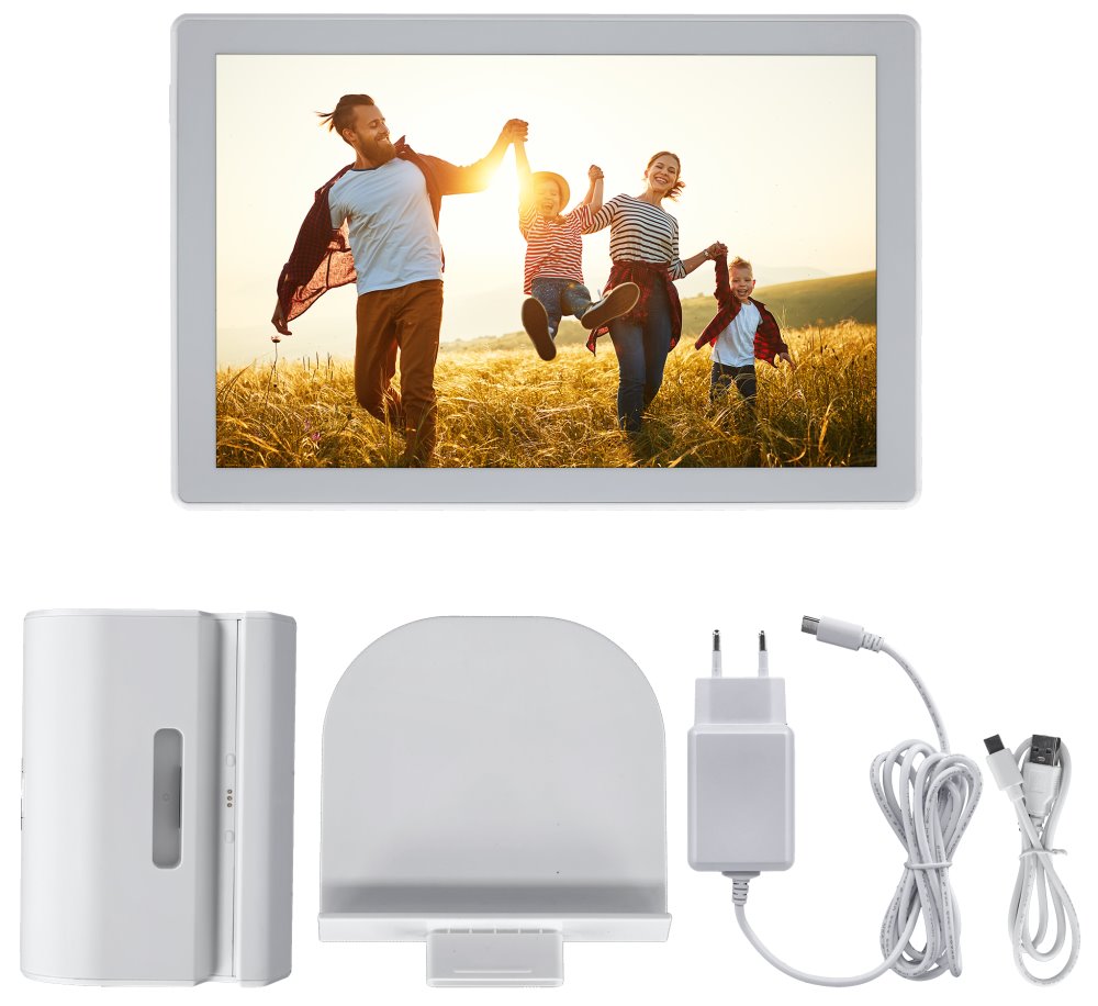 Wi-Fi digitální rámeček pro prezentaci fotografií a krátkých videí (max. 15 s), založený na operačním systému Android 6.0. Nabízí 10,1" dotykový IPS displej s rozlišením 1280 × 800 obrazových bodů, reproduktor o výkonu 1 W a 8 GB interní paměti, která pojme až 7000 fotografií nebo 250 videí. Ty lze do rámečku odesílat přes mobilní aplikaci Frameo nebo klasicky přes paměťovou kartu microSD či externí paměť s konektorem USB-C. Rámeček má vestavěnou dobíjecí baterii s kapacitou 3000 mAh, která zajistí až 3 hodiny provozu. Přiložený stojánek umožňuje instalaci na šířku i na výšku a může být skrze něj dobíjena baterie. K dispozici je navíc mnoho různých funkcí, např. zrcadlení ve vypnutém stavu, automatického nebo ručního otáčení, nastavení snímku, titulků, skrývání či režimu spánku. Potěší také zobrazení hodin a počasí.