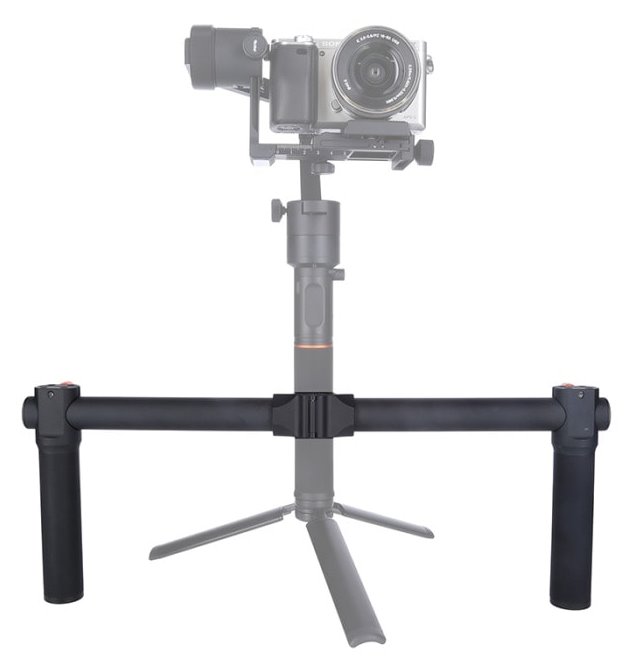 Držák s dvojitou rukojetí pro elektronický stabilizátor Rollei Go! DSLM. Je vyroben z lehké hliníkové slitiny a perfektně padne do rukou.