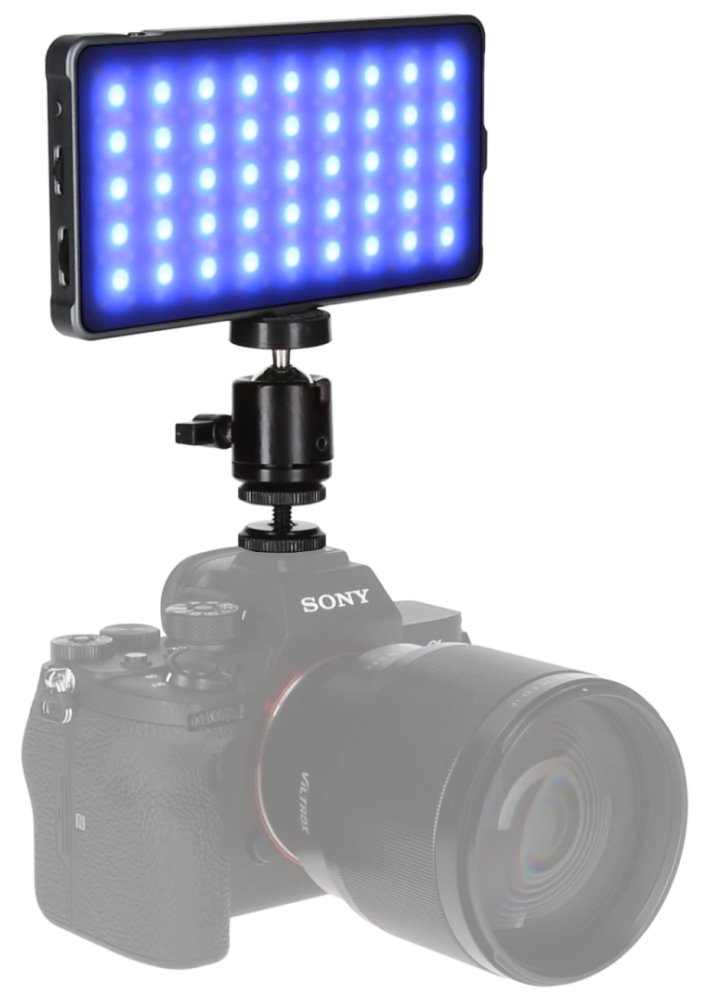 Kompaktní přídavné světlo se 135 LED diodami je ideální pro portrétní fotografie či videografie. Barevné RGB LED diody vám umožní přidat barevný nádech k vašim fotografiím a videím. Předností je kvalitní hliníkové tělo, snadná obsluha a vysoce kontrastní OLED displej pro zobrazení vybraných nastavení. Potěší také plynule stmívatelný jas a libovolně nastavitelná barevná teplota v rozmezí od 3200 do 5600 K. Vestavěná baterie s kapacitou 4000 mAh zajistí výdrž až 1,5 hodiny při maximální intenzitě světla. Navíc díky přítomnému USB portu ho lze využít i jako powerbanku pro dobití mobilního telefonu či tabletu. Pro montáž pak slouží dva 1/4" závity.