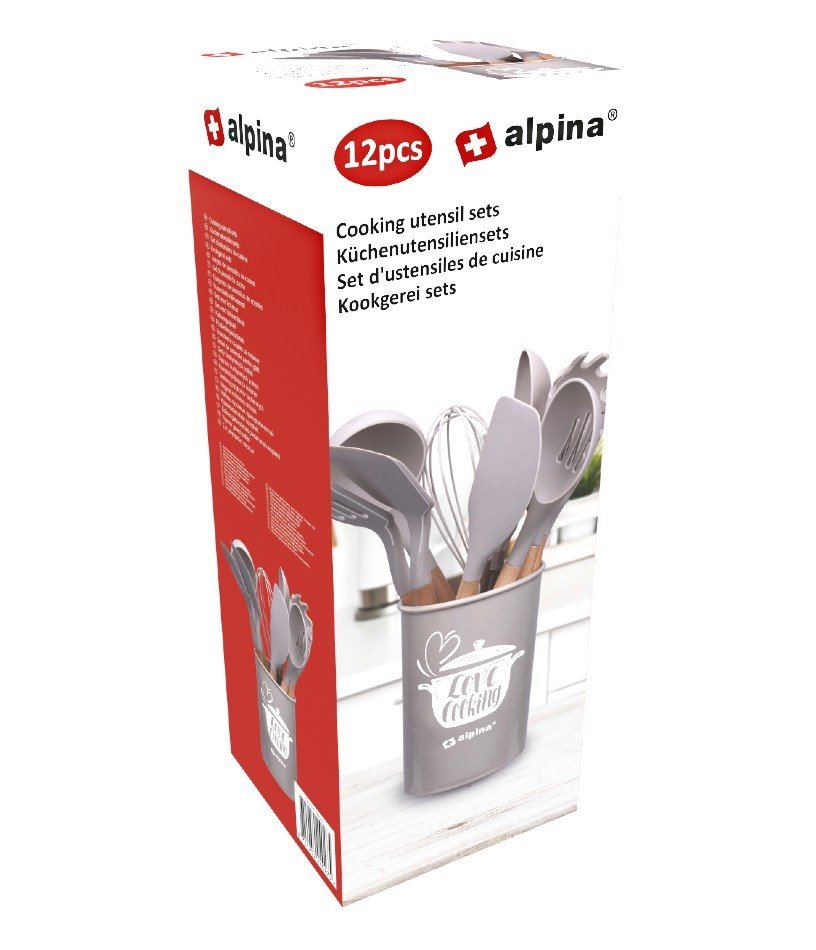 Rozšiřte vybavení své kuchyně a usnadněte si vaření svých oblíbených pokrmů. Sada kuchyňského náčiní od značky Alpina obsahuje pomůcky, které potřebujete pro pohodlnou přípravu a podávání jídla. V balení najdete různé typy naběraček a špachtlí, grilovací kleště, kuchyňský štěteček a metličku. Veškeré pomůcky vložíte do stylového stojánku a postavíte na linku, takže je máte vždy po ruce.