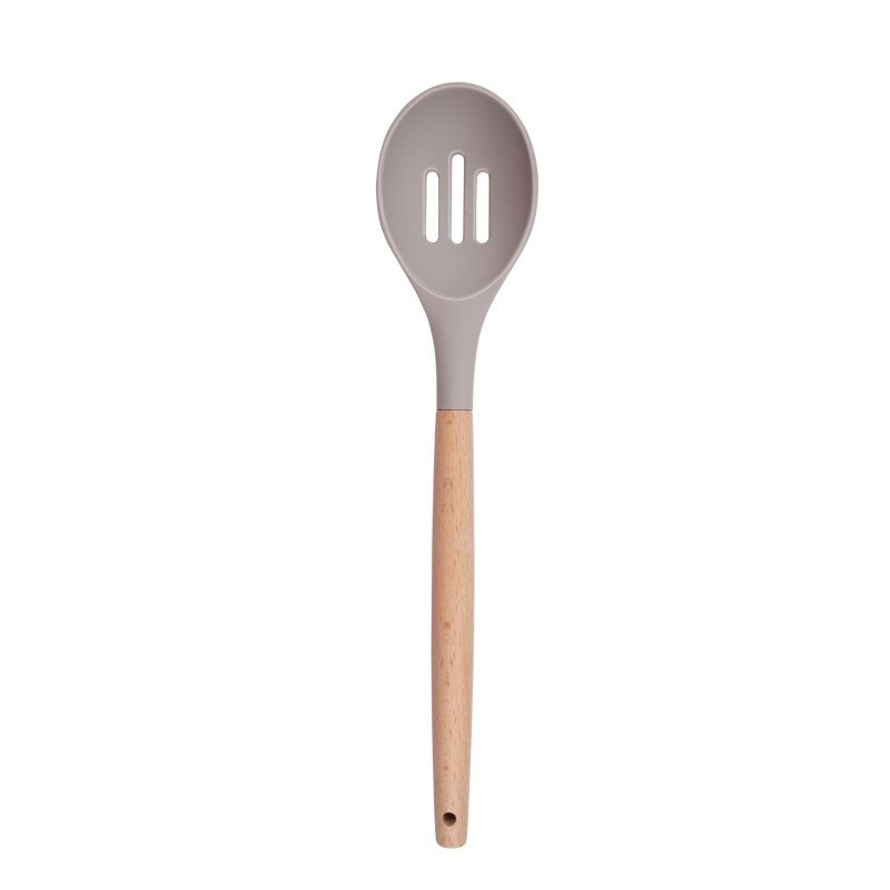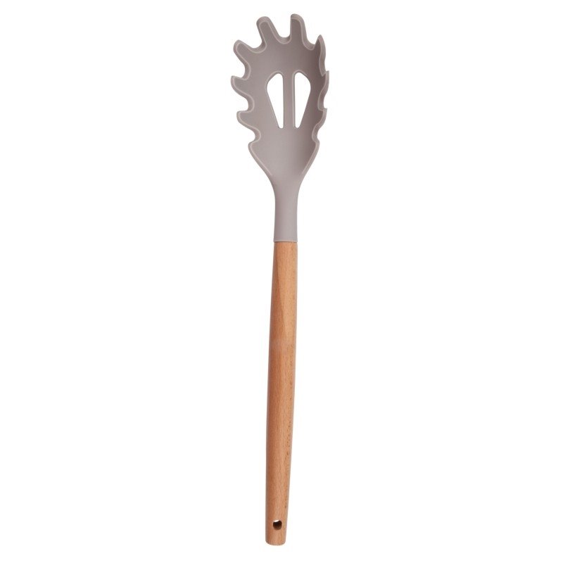 Kuchyňské náčiní má dřevěnou rukojeť a je vyrobené z nylonu. Je tedy šetrné i k citlivým hrncům a pánvím s nepřilnavým povrchem. Jakmile dovaříte, umyjete kuchyňské náčiní ručně ve dřezu nebo ho vložíte do myčky na nádobí.
