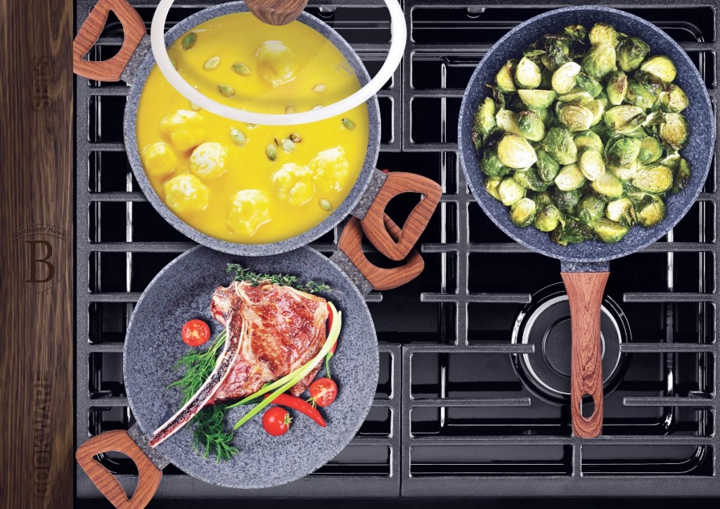 3vrstvý povrch s vnitřním i vnějším mramorovým designem je charakteristický svou dokonalou nepřilnavostí, připravované potraviny se nepřipalují a díky tomu se nádobí velmi jednoduše čistí. Zároveň je vhodný pro zdravé vaření s minimem tuku nebo oleje, v závislosti na použitých surovinách klidně i bez jediné kapky tuku. Vnitřní i vnější vrstva neobsahují žádné škodliviny, výsledné pokrmy tak neztrácí vařením svoje vitamíny. Jádro kastrolů i pánví z kovaného hliníku vyniká vysokou stabilitou a perfektní tepelnou vodivostí, takže se nejen rychle a rovnoměrně zahřeje po celém povrchu, velmi snadno také teplotu při vaření udržuje.