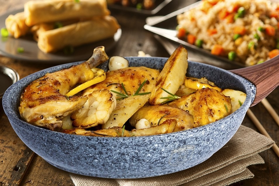 3vrstvý povrch s vnitřním i vnějším mramorovým designem je charakteristický svou dokonalou nepřilnavostí, připravované potraviny se nepřipalují a díky tomu se nádobí velmi jednoduše čistí. Zároveň je vhodný pro zdravé vaření s minimem tuku nebo oleje, v závislosti na použitých surovinách klidně i bez jediné kapky tuku. Vnitřní i vnější vrstva neobsahují žádné škodliviny, výsledné pokrmy tak neztrácí vařením svoje vitamíny. Jádro kastrolů i pánví z kovaného hliníku vyniká vysokou stabilitou a perfektní tepelnou vodivostí, takže se nejen rychle a rovnoměrně zahřeje po celém povrchu, velmi snadno také teplotu při vaření udržuje.