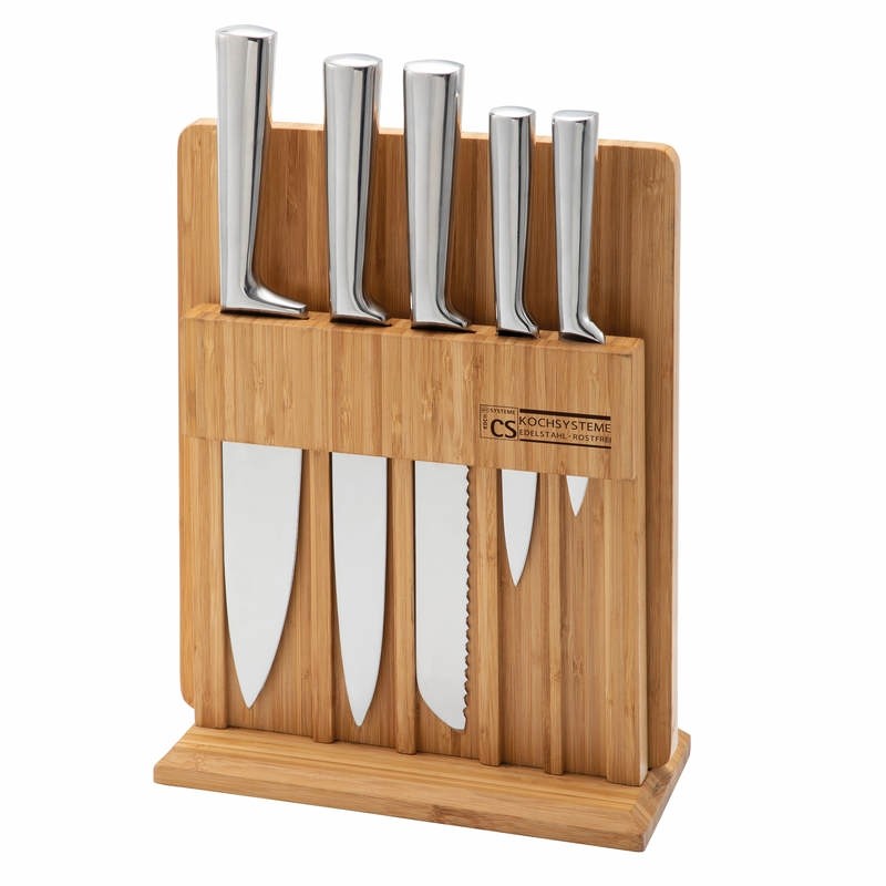 Sadu nožů CS Solingen Soest v praktickém dřevěném stojanu umístíte na kuchyňskou linku. Během vaření je máte neustále po ruce. Nože jsou vyrobené z jednoho kusu nerezové oceli. Laserem broušené čepele si zachovávají dlouhodobě svou ostrost a životnost.