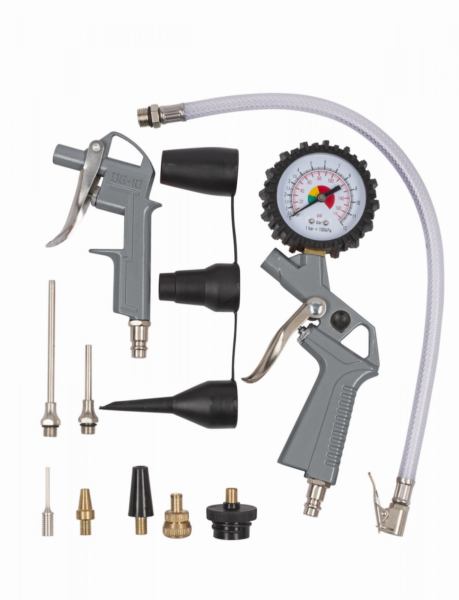 Praktická 13ks sada příslušenství PowerPlus POWAIR0023 k olejovým a bezolejovým kompresorům z řady POWX nalezne uplatnění v každé domácnosti, dílně, garáži či v tělocvičně. Součástí této úžasné sady je pneumatická pistole s rychloupínacím systémem Quick and Easy, 2 ofukovací trysky, 5m polyethylenová vzduchová hadice a 8 nástavců pro univerzální použití. S touto 13dílnou pneumatickou sadou vás už nikdy nic nezaskočí, jelikož máte vše potřebné po ruce. Můžete hravě nafukovat kola, bazény, kruhy, lehátka, míče a jiné předměty bez jakéhokoliv omezení.