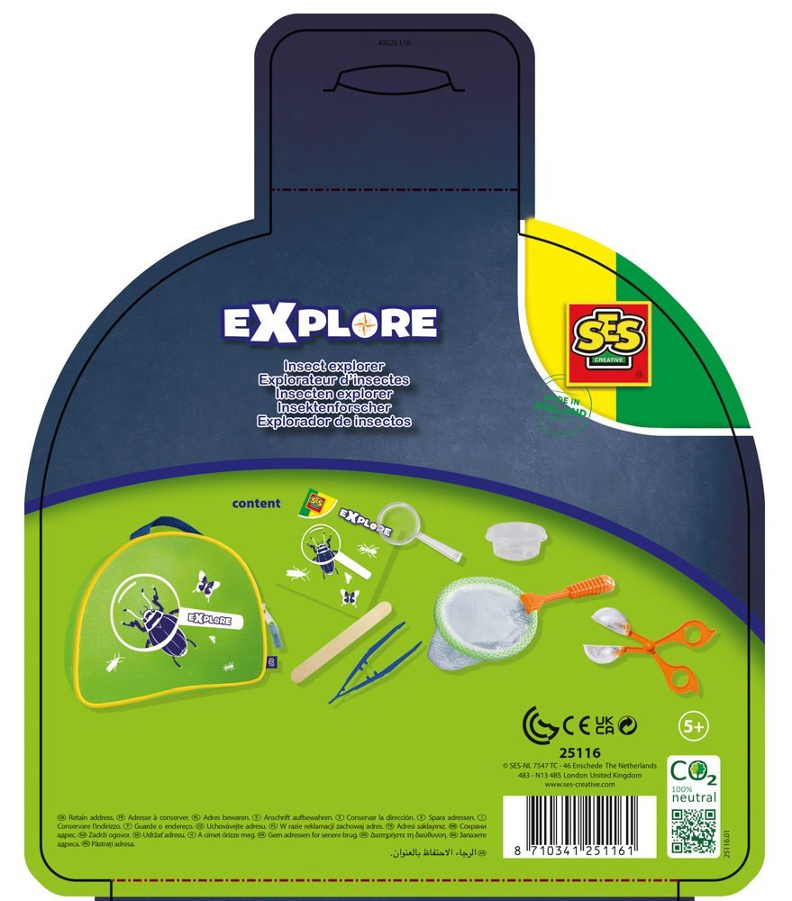 Pomozte dětem prozkoumat zahradu, les, park nebo třeba vodní hladinu se sadou Ses Explore ke zkoumání hmyzu. Zahlédly brouka, kterého neznají? Tabulka hmyzu jim pomůže zjistit, o jaký druh jde. V sadě najdete celkem 7 nástrojů pro hledání, chytání a kontrolu těchto malých stvoření. Pokud vaši potomci narazili na několik různých druhů hmyzu, mohou je vložit do speciálního pouzdra a prohlédnout si je zblízka díky lupě a pinzetě.