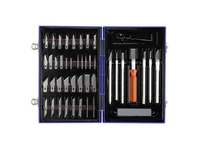 50dílné sadě nožů jsou ze slitiny hliníku a čepele jsou vyrobeny z