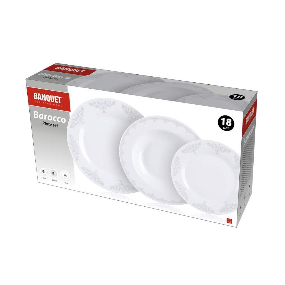 Potřebujete do své kuchyně nové nádobí? Talířová sada Barocco od značky Banquet se vyrábí z kvalitního porcelánu. Jemný dekor elegantně doplní design každé kuchyně. Díky sadě naservírujete připravené jídlo až pro 6 členů rodiny najednou.