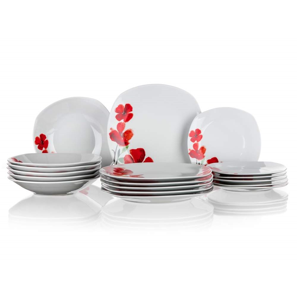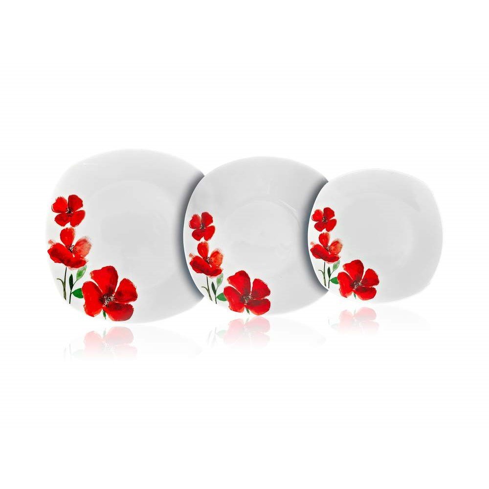 V balení najdete celkem 18 kusů nádobí – 6 mělkých talířů, 6 hlubokých talířů a 6 dezertních talířků. Se svým dekorem vlčích máků působí elegantně. Pokrm si dokonce můžete ohřát v mikrovlnné troubě. Díky svému provedení se sada hodí pro jakoukoliv příležitost. Připravíte si snídani či oběd nebo ji využijete k servírování na oslavě. Jakmile se svými blízkými dojíte, můžete nádobí umýt v myčce na nádobí. Je ovšem potřeba zvolit méně intenzivní program mytí.
