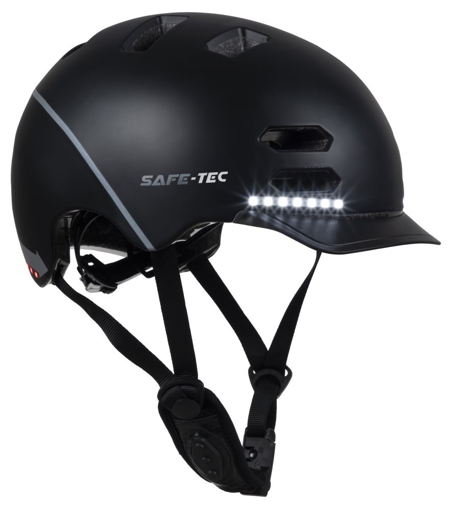 Chytrá helma pro zvýšení vaší bezpečnosti při sportu. Inovativní řešení přináší zabudované vysoce svítivé přední a zadní LED světla. Spínačem na zadní straně přilby volíte požadovaný režim světel. Vestavěné stereo reproduktory využívají přenos zvuku po kosti a umožní tak poslech hudby bez krytí okolního ruchu. V popruhu pod bradou je umístěný mikrofon pro bezpečné vyřízení hovorů. Helmu spojíte s vaším mobilním telefonem bezdrátově díky Bluetooth. Fidlock magnetické zapínání umožňuje rychlé sundání a nasazení helmy. Nabíjení integrované baterie je realizováno skrze USB-C konektor.