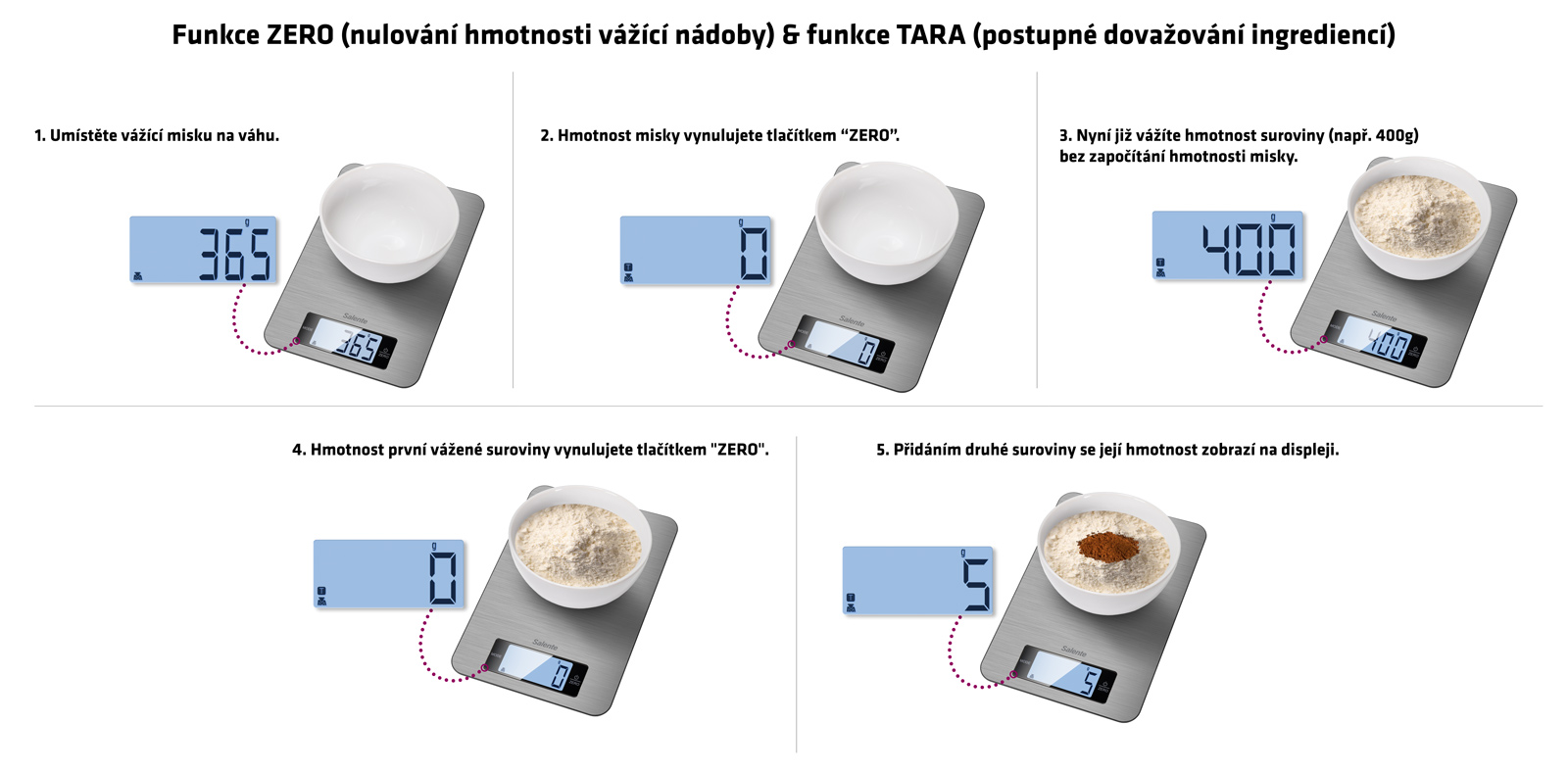 vynulujete tlačítkem "ZERO". 5. Přidáním druhé suroviny se její