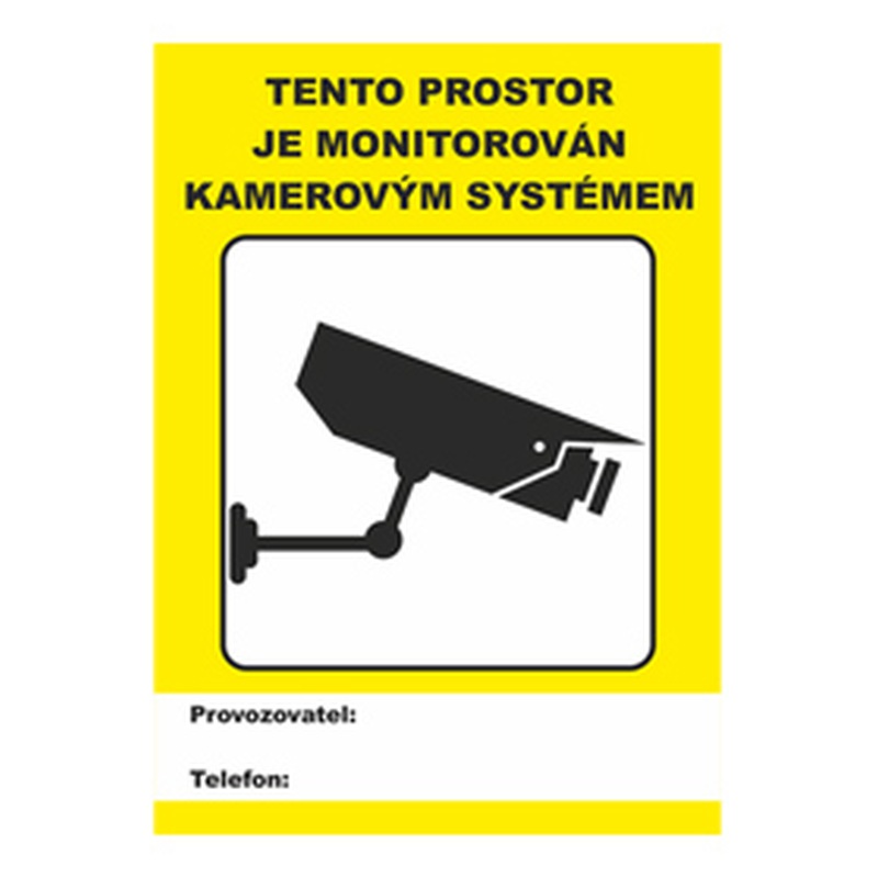 Samolepka - tento prostor je monitorován kamerovým systémem 14x10 cm. Dodáváno na podkladovém materiálu, pro snadné sejmutí samolepky a její následnou aplikaci.