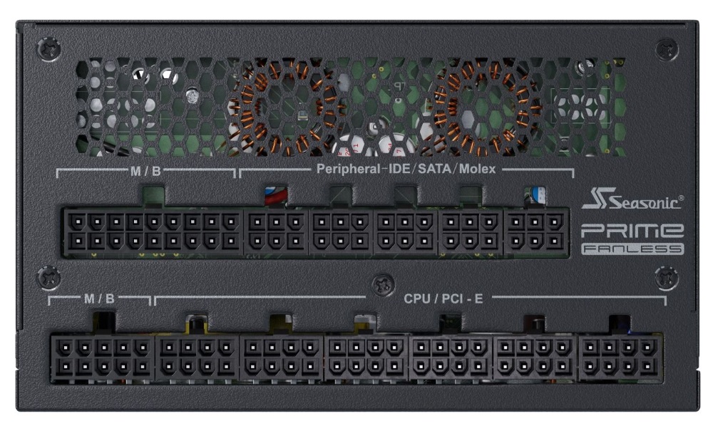 Napájecí zdroj s výkonem 700 W využívá technologii bez ventilátoru, která zcela eliminuje hluk a zajišťuje absolutně tichý provoz. Modulární kabeláž ušetří cenné místo ve skříni. Účinnost zdroje je 80PLUS Titanium.