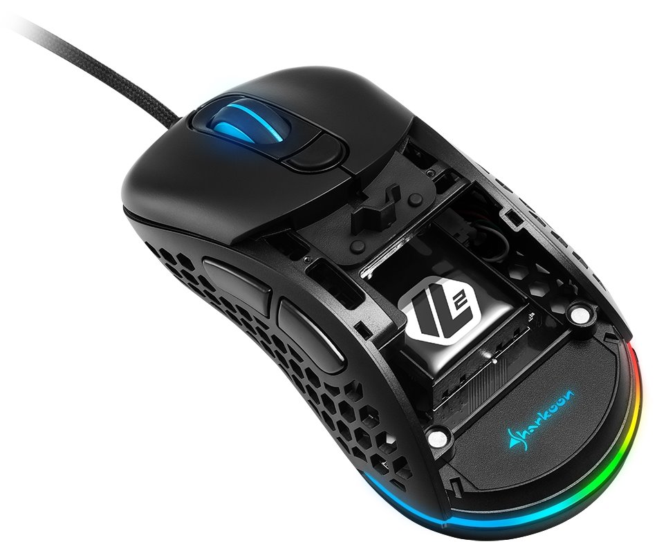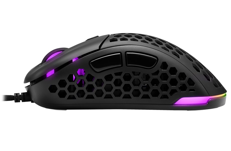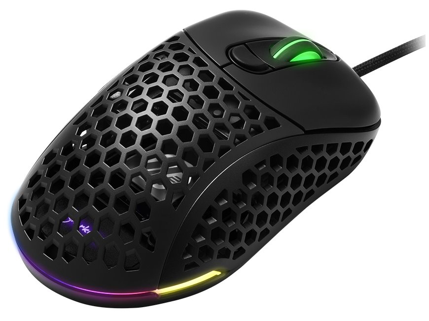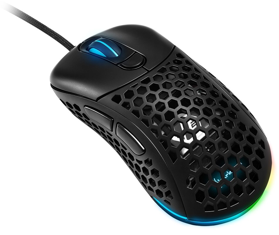 Ultralehká herní drátová myš založená na optickém senzoru snímání povrchu s přepínatelným rozlišením až 16000 DPI. Designové provedení s barevným LED podsvícením navíc doplňuje vrchní odnímatelný magnetický kryt, který lze jednoduše vyměnit za klasickou uzavřenou alternativu. Myš disponuje 6 programovatelnými tlačítky a opleteným USB kabele o délce 1,8 m.