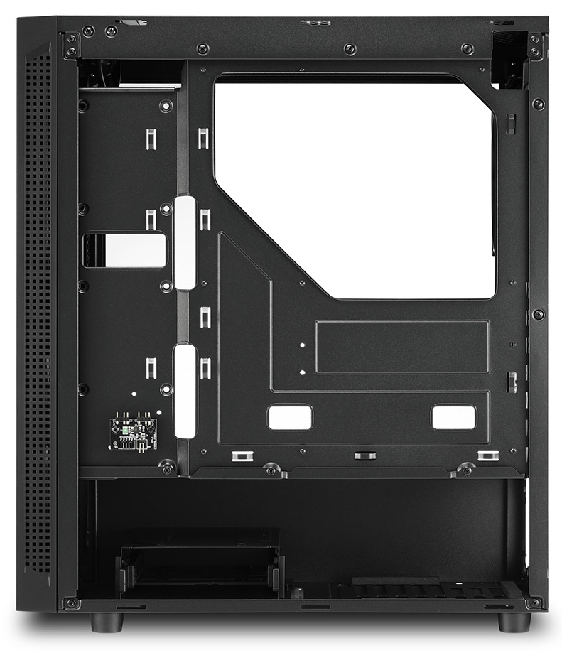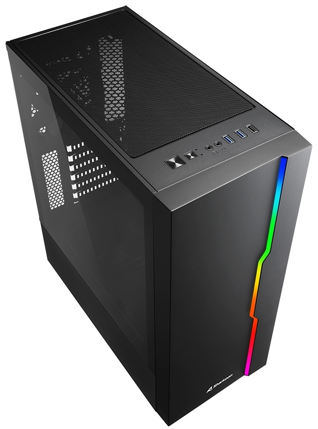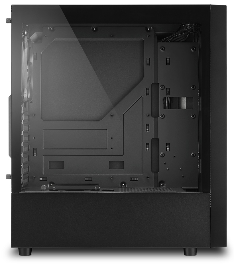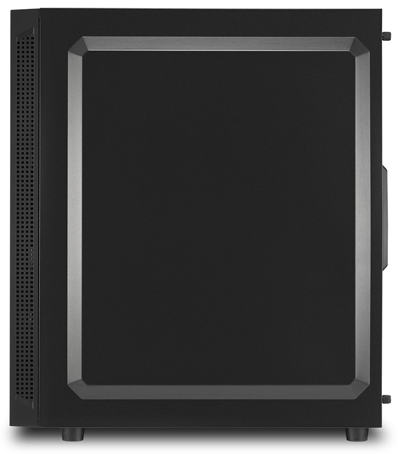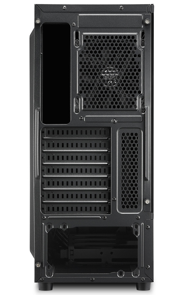 Kvalitní počítačová skříň formátu Middle Tower nabízí tři 2,5" pozice pro SSD disky a dvě 3,5" pozice pro pevné disky. Na horním panelu se nachází jeden port USB 2.0, dva porty USB 3.0, sluchátkový výstup a audio vstup pro mikrofon. Skříň je vybavena průhlednou bočnicí a 120 mm ventilátorem. Podsvícený přední panel zajišťuje vytříbený design. Ve skříni je dostatek prostoru pro chladič CPU do výšky až 157 mm a grafickou kartu o délce až 335 mm. Skříň je dodávána bez zdroje.