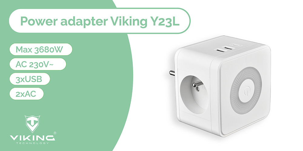 Síťový adaptér Viking Y23L přináší pohodlí a flexibilitu díky 2 AC
