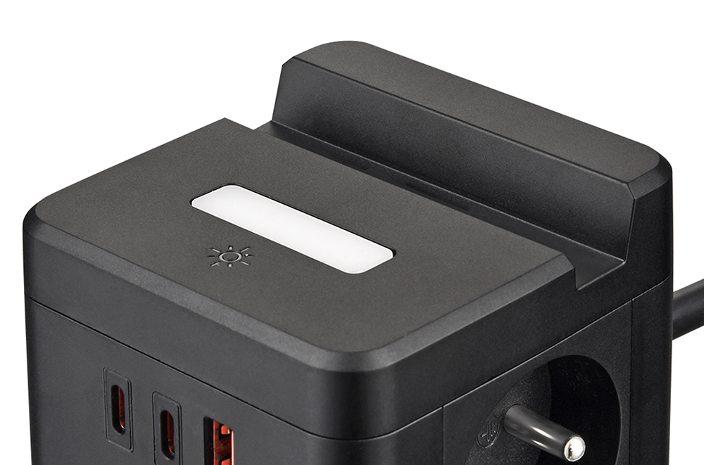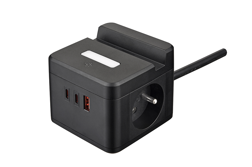 Síťový adaptér VIKING YC23H kombinuje 2 AC výstupy, 3 USB