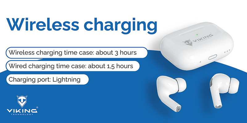 Nabíjejte svá sluchátka jak pomocí lightning kabelu, tak i bezdrátově pomocí nabíjecí podložky. Nabíjecí pouzdro lze snadno dobíjet pomocí lightning kabelu nebo bezdrátově prostřednictvím nabíjecí podložky. Už nikdy se nebudete muset starat o vybitou baterii.