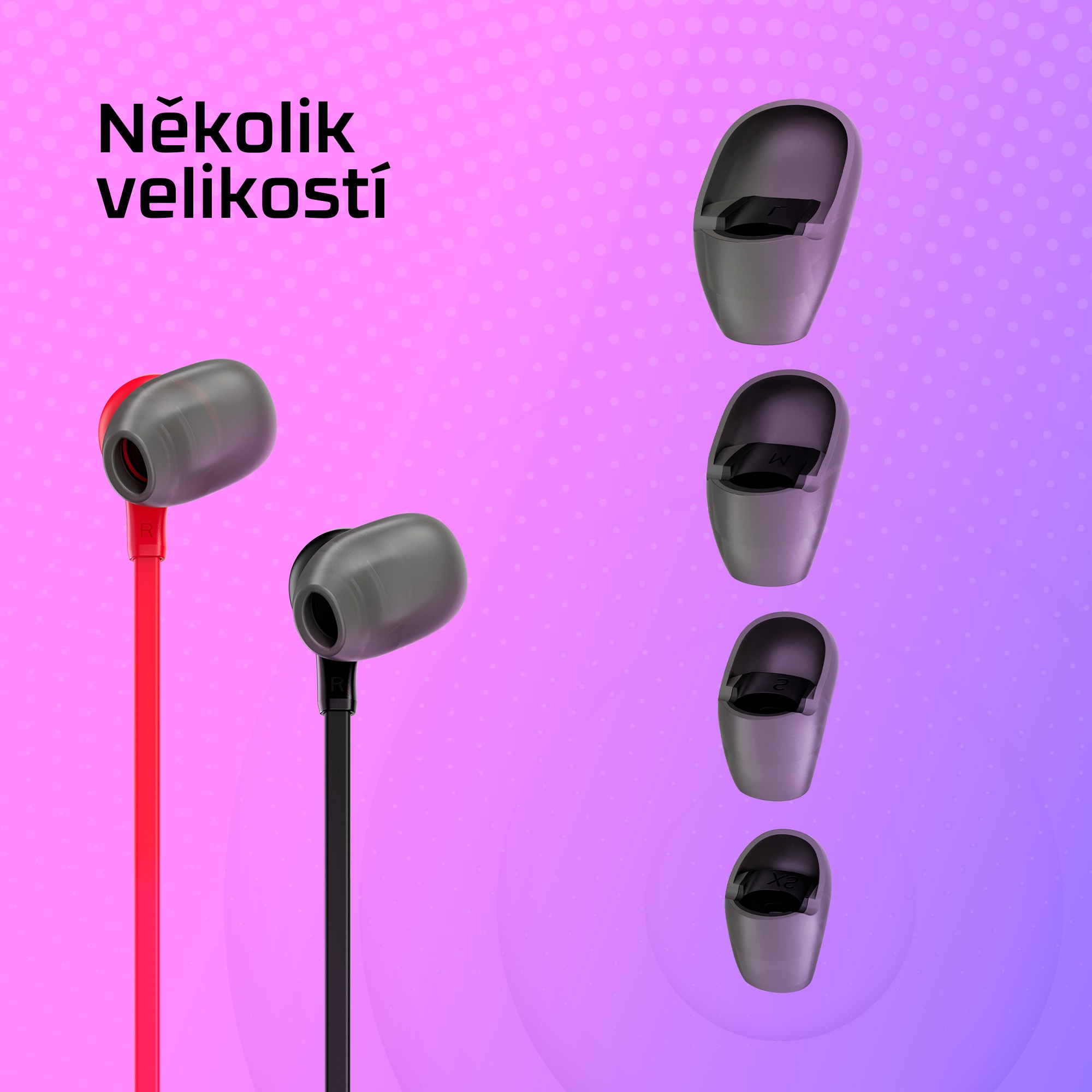 Díky 4 velikostem přepracovaných koncovek do uší, od velkých až po extramalé, nebudeš mít problém najít optimální variantu podle svých potřeb.