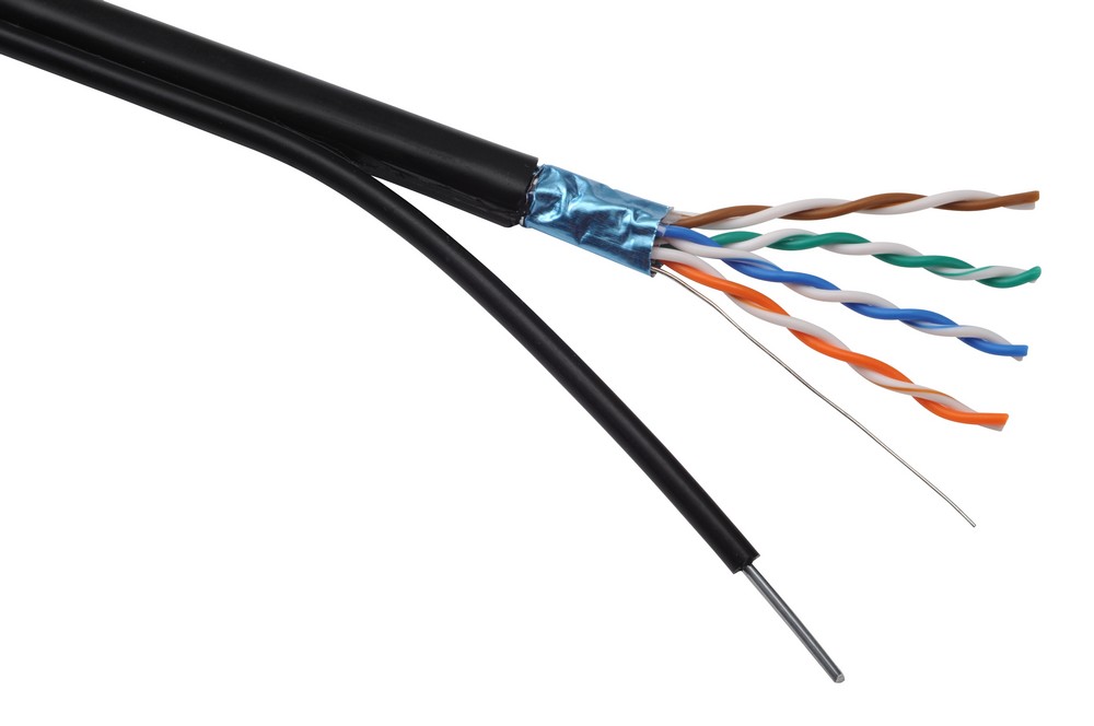 samonosný stíněný kabel CAT5E s polyethylenovým pláštěm. Kabel