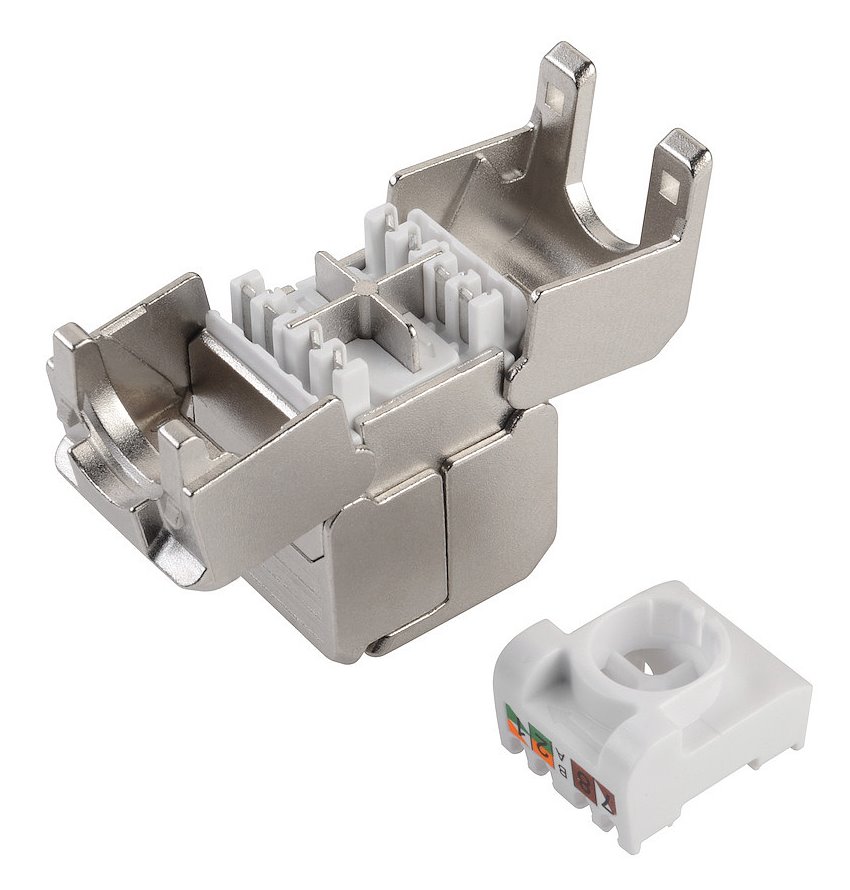 Samořezná stíněná spojka kategorie 6A, kterou lze použít pro jednoduché prodloužení nebo spojení datového kabelu. Vyznačuje se vysokou spolehlivostí, dlouhou životností a velmi jednoduchou instalací.