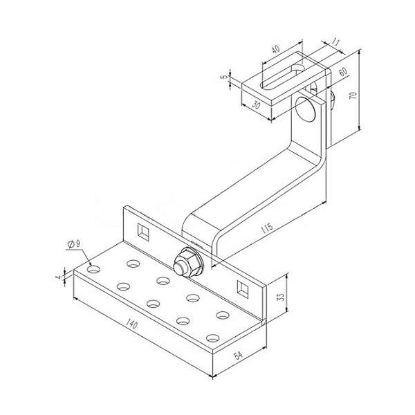 Nastavitelný střešní hák pro připevnění solárních panelů na šikmé střechy s taškovou krytinou. Jeho nastavitelná konstrukce může montážníkům pomoci při správné instalaci a není třeba měnit háky, pokud jsou některé vzdálenosti špatně změřené. To může ušetřit čas a náklady.